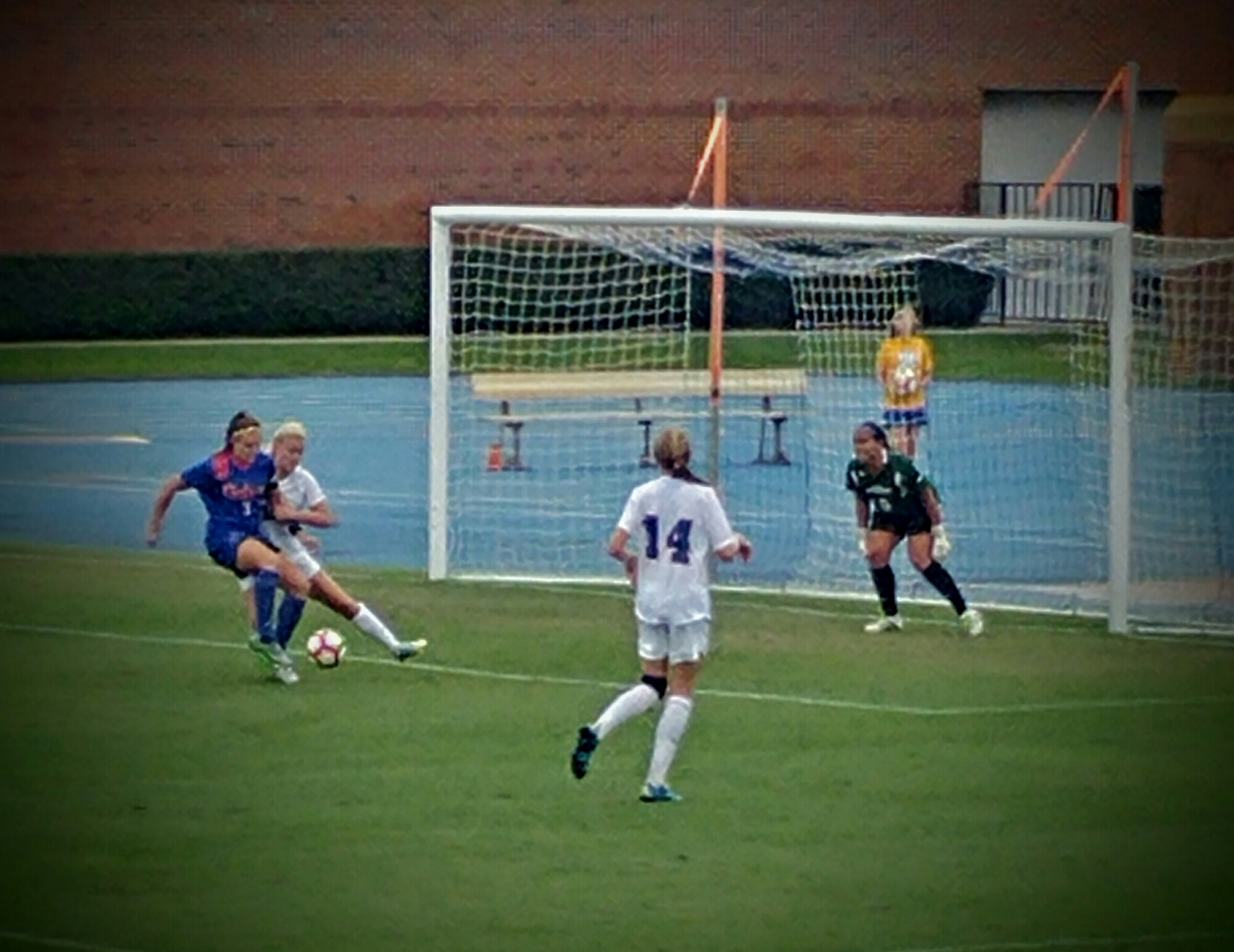 In the 24th minute Melanie Monteagudo scored to put the Gators on top. Monteagudo took a pass from senior Savannah Jordan, and after a miscue by the Owls’ defense, was able to get the goal. Monteagudo had just entered the game as a substitute on the previous dead ball, and scored on her first touch. This was the second goal of the season for the sophmore, and also the second of her career.
