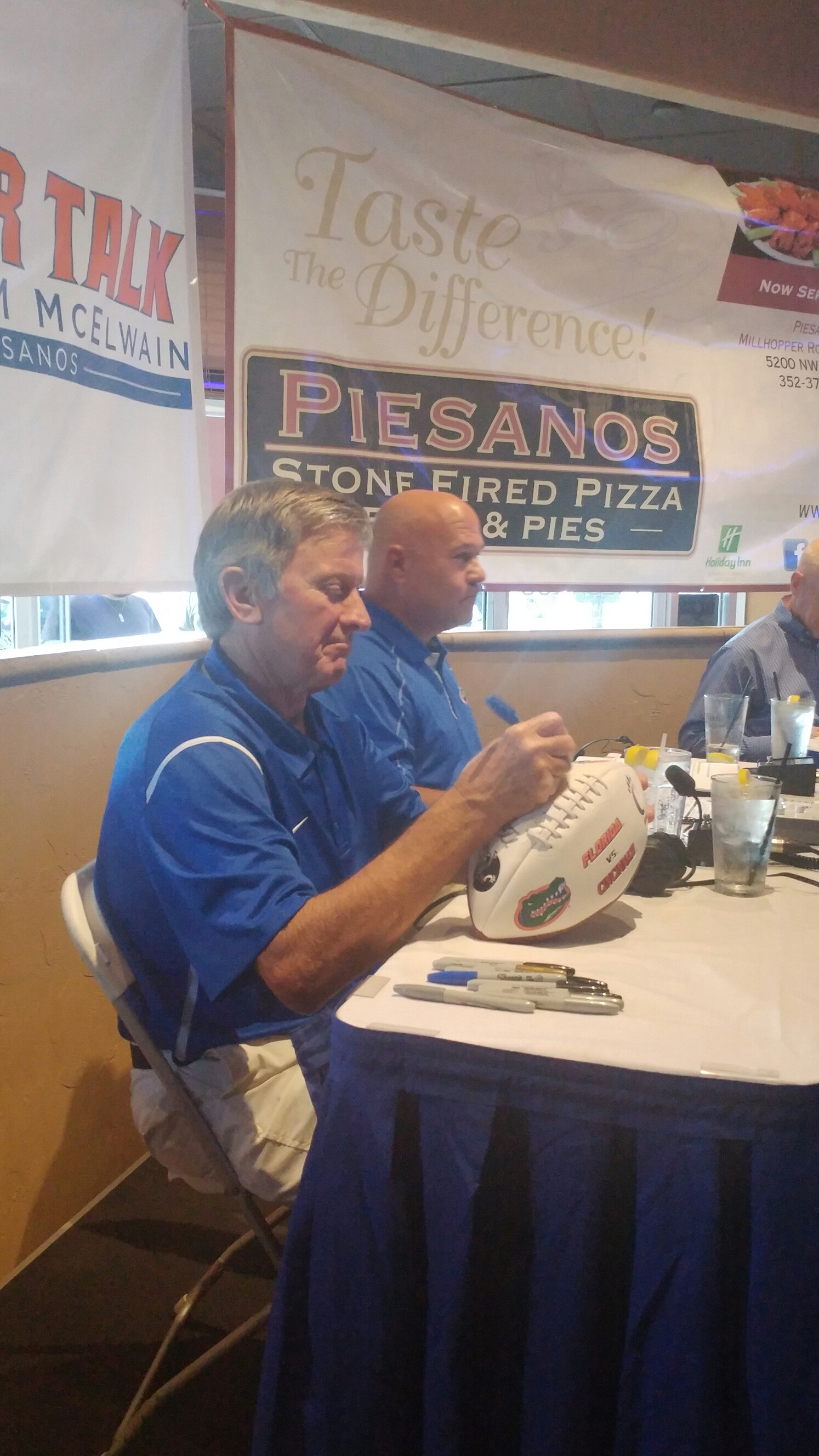 Spurrier told the standing-room only crowd at Piesanos that he has no interest in coaching the team, but that he will be used as support for head coach Jim McElwain and his staff.