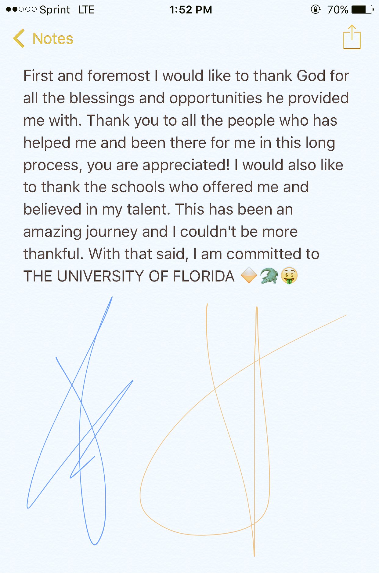New York, NY- The Florida Gators have landed a big commitment for the 2017 recruiting class.
