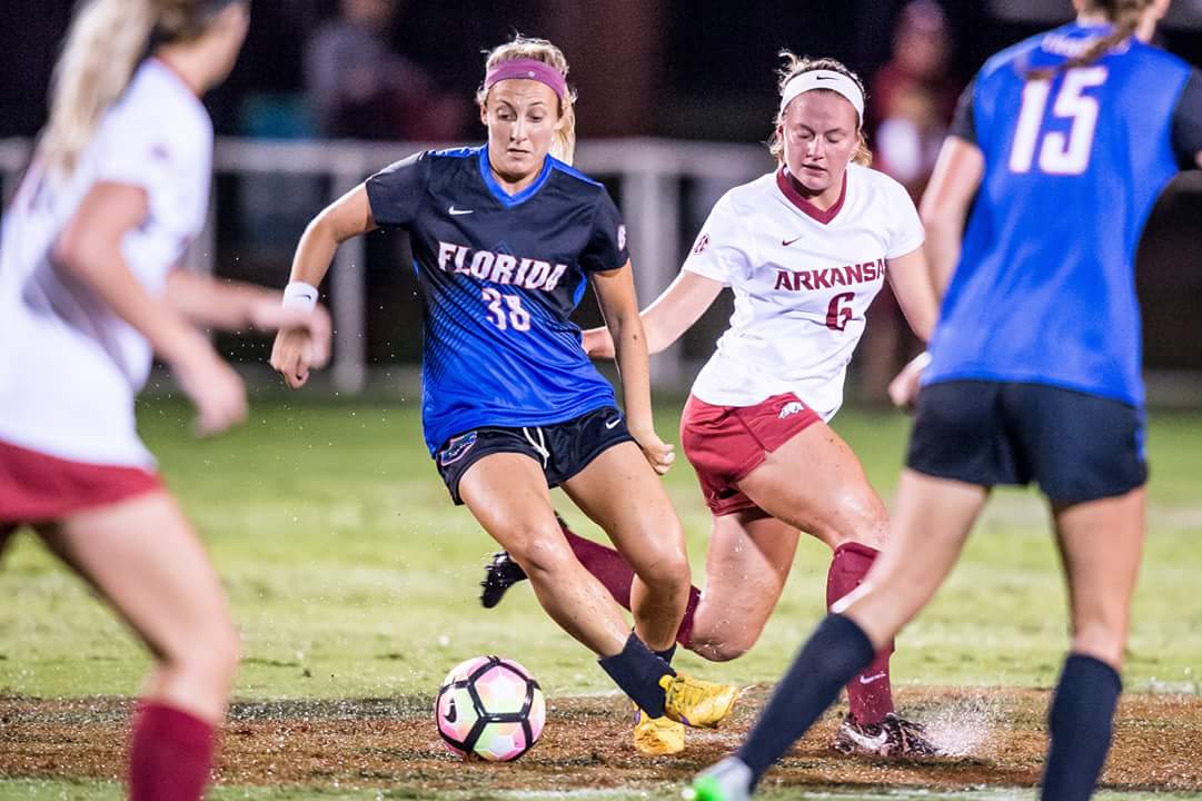 Fayetteville, AK- After a two hour rain delay, the Arkansas Razorbacks soccer team was able to accomplish something it had never done. The Razorbacks beat the Florida Gators for the first time in program history behind two goals from junior Jessi Hartzler in a three minute span in the first half. The Gators had won the first twenty matches between the two. Florida dominate play in the second half, but were able to only get one goal past Razorbacks senior goalkeeper Cameron Carter. Florida outshot Arkansas 20-13, with 15 of those shots recorded in the second half. The Gators fall to 5-2 on the season, and 1-1 in SEC play. Arkansas improves to 8-1 on the season, including a win over #2 Duke, and 2-0 in the SEC.