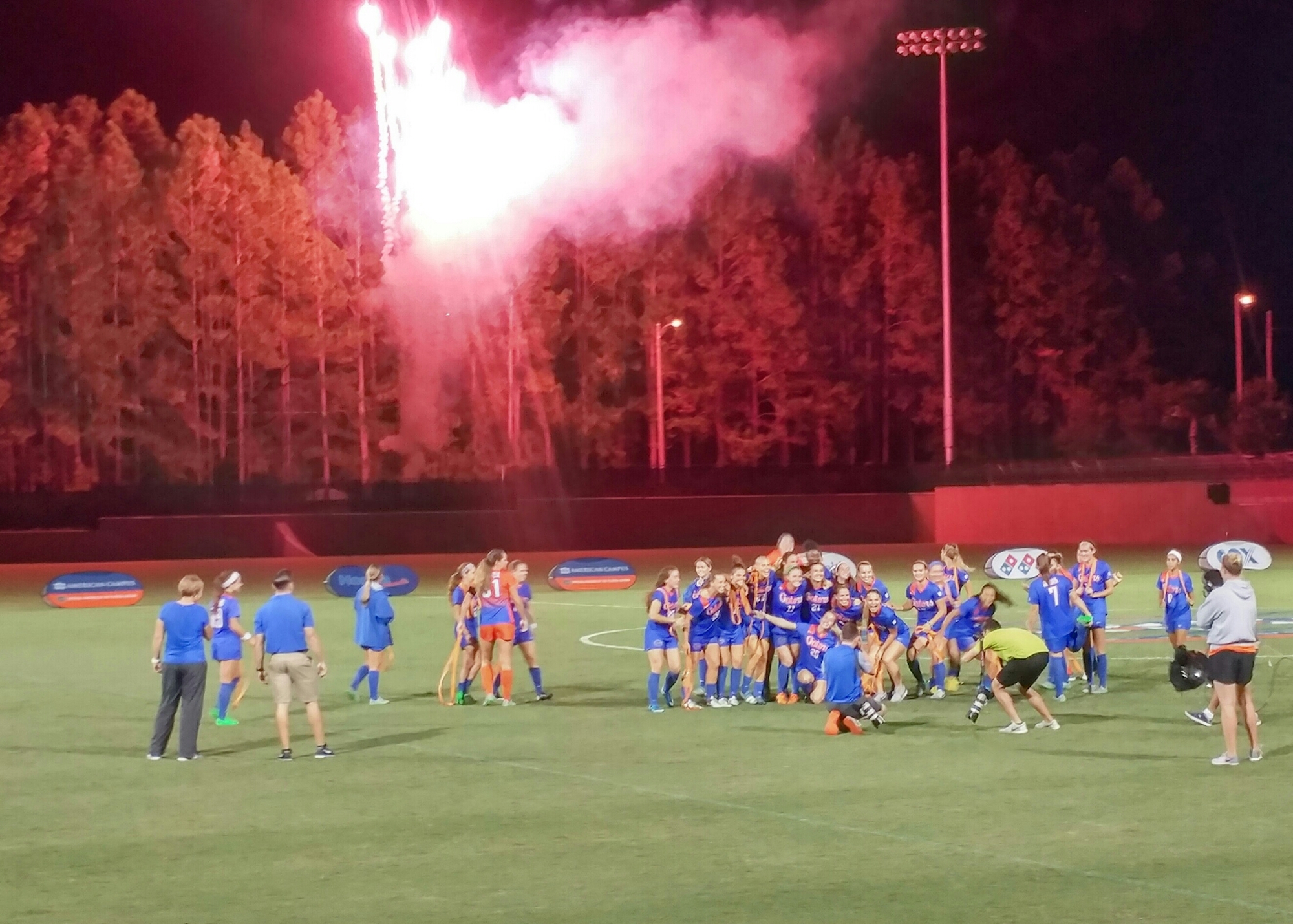 GAINESVILLE, FL- The Florida Gators soccer team played a complete game and defeated the Alabama Crimson Tide by a score of 6-0. Fans and players alike shared in the post game fireworks display, but on the field only the Gators put on a show.