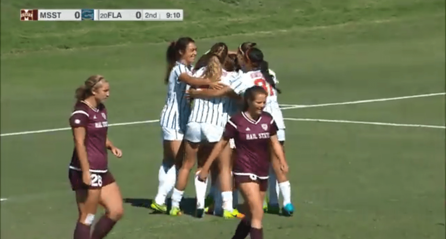 Mayra Pelayo scored the game winner in the 81st minute. Senior Meggie Dougherty Howard sent a corner kick to the far post, where a Bulldog defender headed it to the left foot of Pelayo. Pelayo then volleyed the ball into the top net. The Gators had numerous near-misses before the goal. Mississippi State goalkeeper Tanya De Souza was credited with nine saves on the afternoon.
