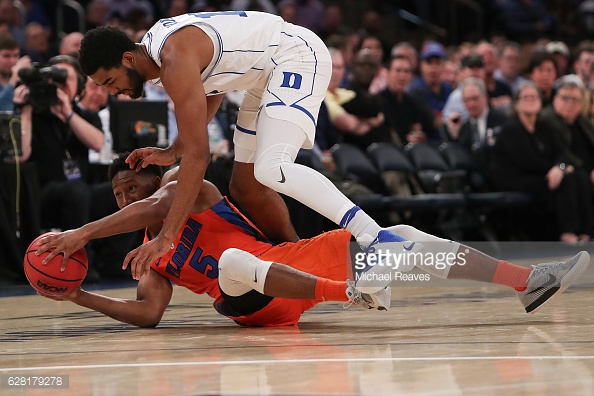 NEW YORK, NY- The Florida Gators played against one of the top teams in the country on Tuesday night. And for the most part, Florida went toe-to-toe with #5 Duke. Florida allowed the Blue Devils to shoot at a 53% clip, and made several turnovers during the stretch run in the second half that ended any chance of a comeback.