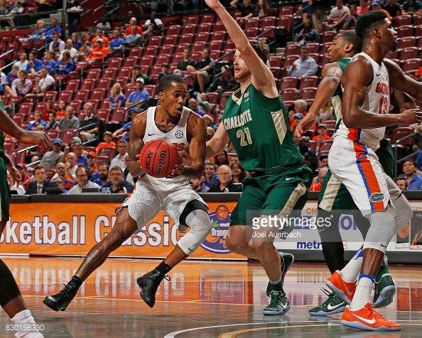 SUNRISE, FL- The Florida Gators have finally completed their eleven game road/neutral site schedule to open the season. The new Exactech Arena at the Stephen C. O’Connell Center will host Florida basketball on Wednesday night. Saturday evening though, the Gators had to play UNC-Charlotte in the Orange Bowl Classic in Sunrise, Florida. The 49ers were no match for Florida. Florida raced out to a 12-3 lead, and extended the lead as the game wore on. Florida led 48-22 at halftime, and was able to use eleven players. Center John Egbunu was unable to play after sustaining a hamstring injury in practice on Tuesday.