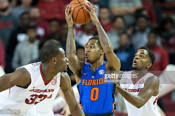 FAYETTEVILLE, AK- The Florida Gators have raced out to a 1-0 conference record after defeating a very good Arkansas team at Bud Walton Arena in Fayetteville. For KeVaughn Allen, it was a homecoming. The sophomore, from Little Rock, AK, led the Gators with 21 points. On Florida’s first possession, Allen was booed by Arkansas fans before casually draining a three-pointer. Allen shot 5-9 from behind the three point line, and every time Arkansas made a run, Allen seemed to have the response for the Gators.
