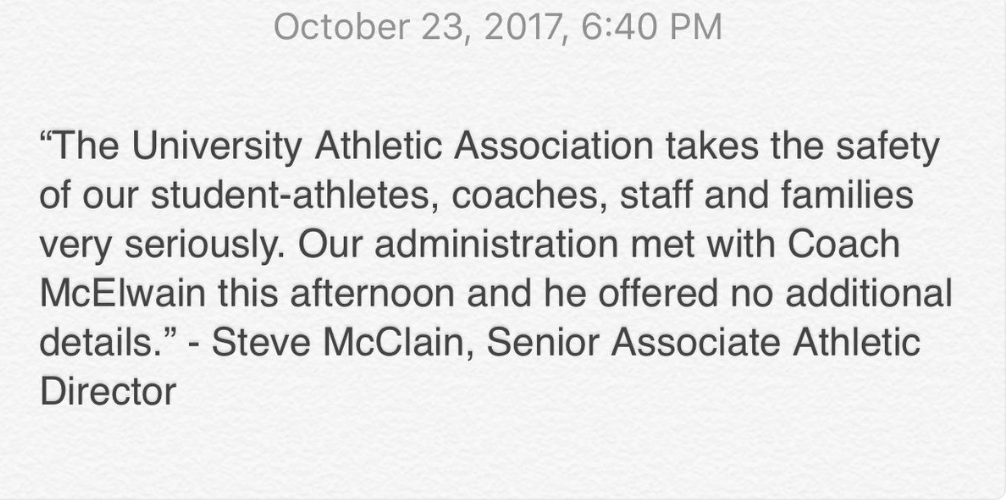 On Monday, Jim McElwain made the now infamous comments about his players and family members receiving death threats. Later, after talking with McElwain, the UAA released a statement that did anything but support the head coach’s claims.