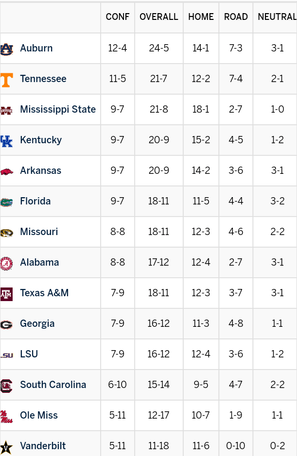 The Gators are now in a four way tie for third place in the SEC. Alabama is one game back and Kentucky (Florida’s other remaining opponent) is tied with Florida.