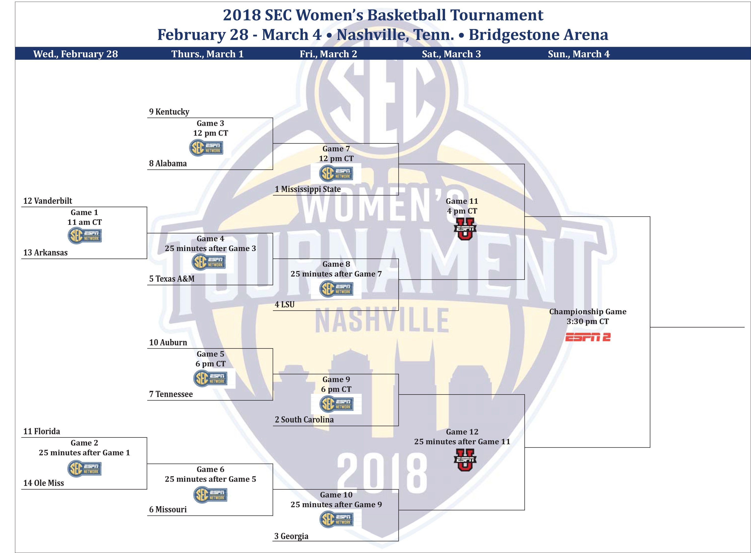 The Gators will face #14 seed Ole Miss at approximately 2:25 PM from Bridgestone Arena.