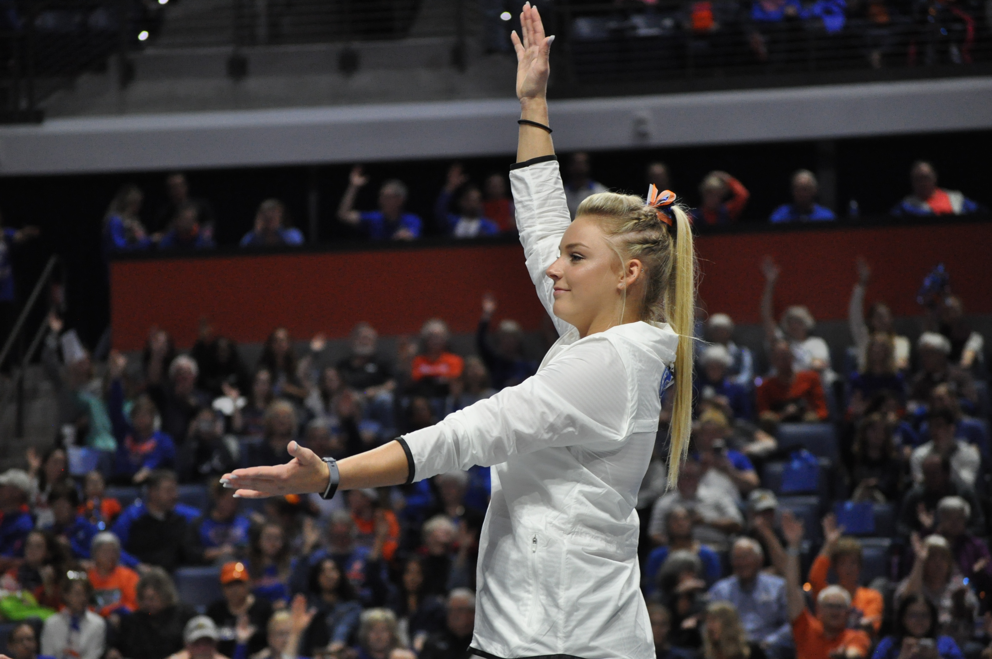 Despite the loss of the meet itself, the Gators still won four of the five individual titles, with Boren taking vault and Thomas taking bars, floor and the all-around. When asked about Thomas’s training this week, Rowland discussed her priorities and how she put the ball in Thomas’s court. The freshman left immediately after the meet for Sarasota, Fla. where the following morning, she would compete in verification for National Team Camp with Team USA. “We’ve talked about it for a little while and advised her that this would be a great meet to rest. She does not, did not want to do that, and I did not want to take away that opportunity for her. Really, it’s what she wants. Her health is of utmost interest… she’s healthy, she’s in great shape, and this is what she wanted to do, so we gave her the green light. She’s in control, she’s in charge, and she’s taking ownership of her own life and her gymnastics, so I’m really proud of her for that.”