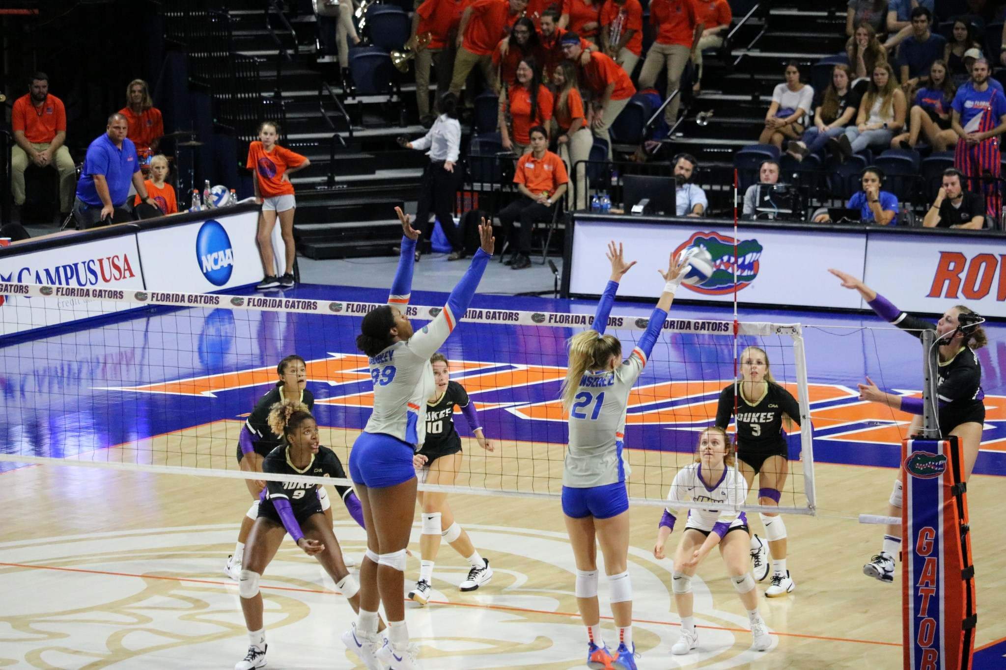 The Gators continued their momentum into the second and final match of the day against JMU. They defeated the guests in straight sets (25-19, 25-11, 25-17) and improved to 4-2 on the season.