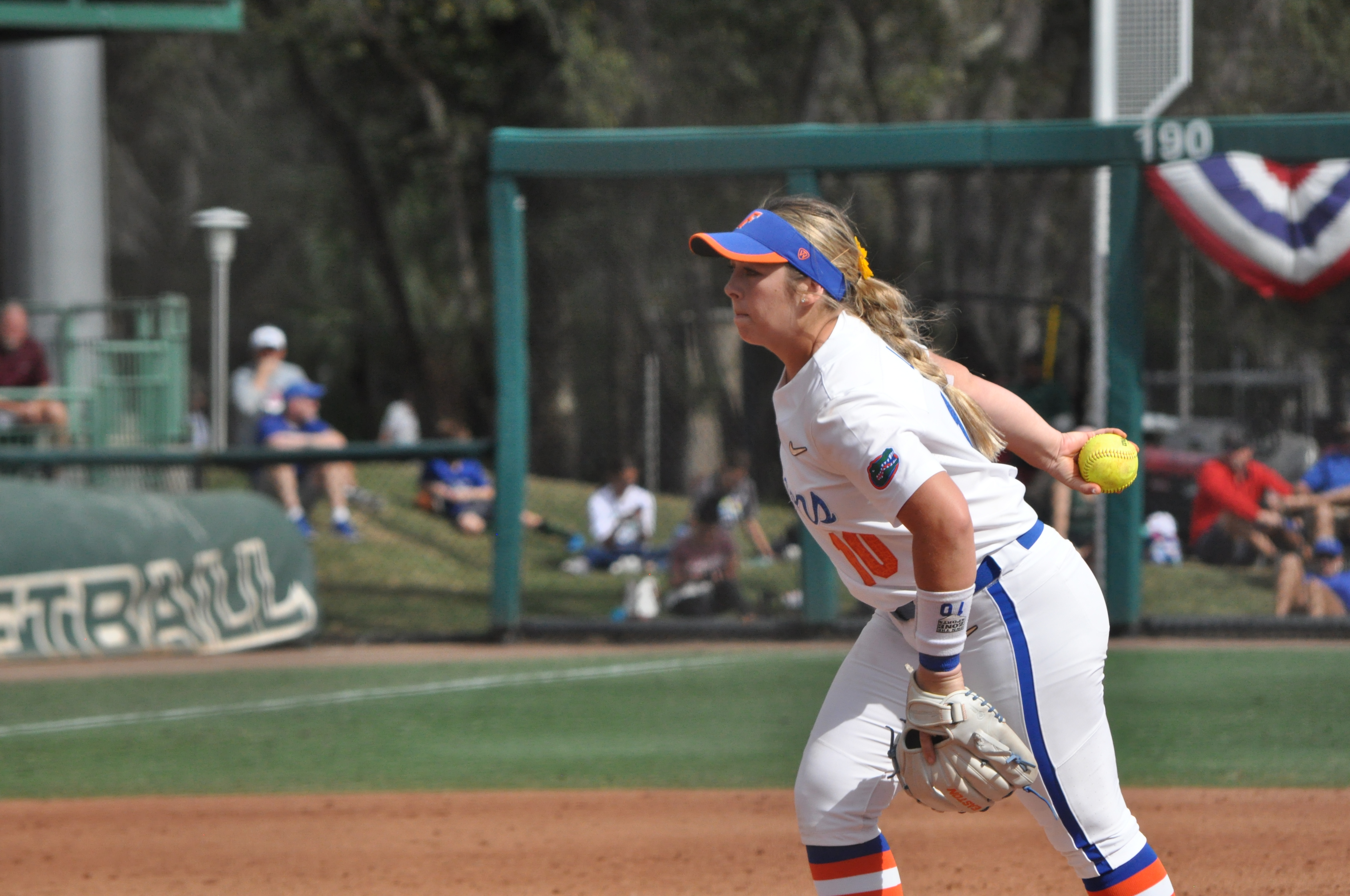After a shaky first inning, Florida pitcher Natalie Lugo settled in nicely. Lugo struck out 11 while allowing 5 hits and no walks.