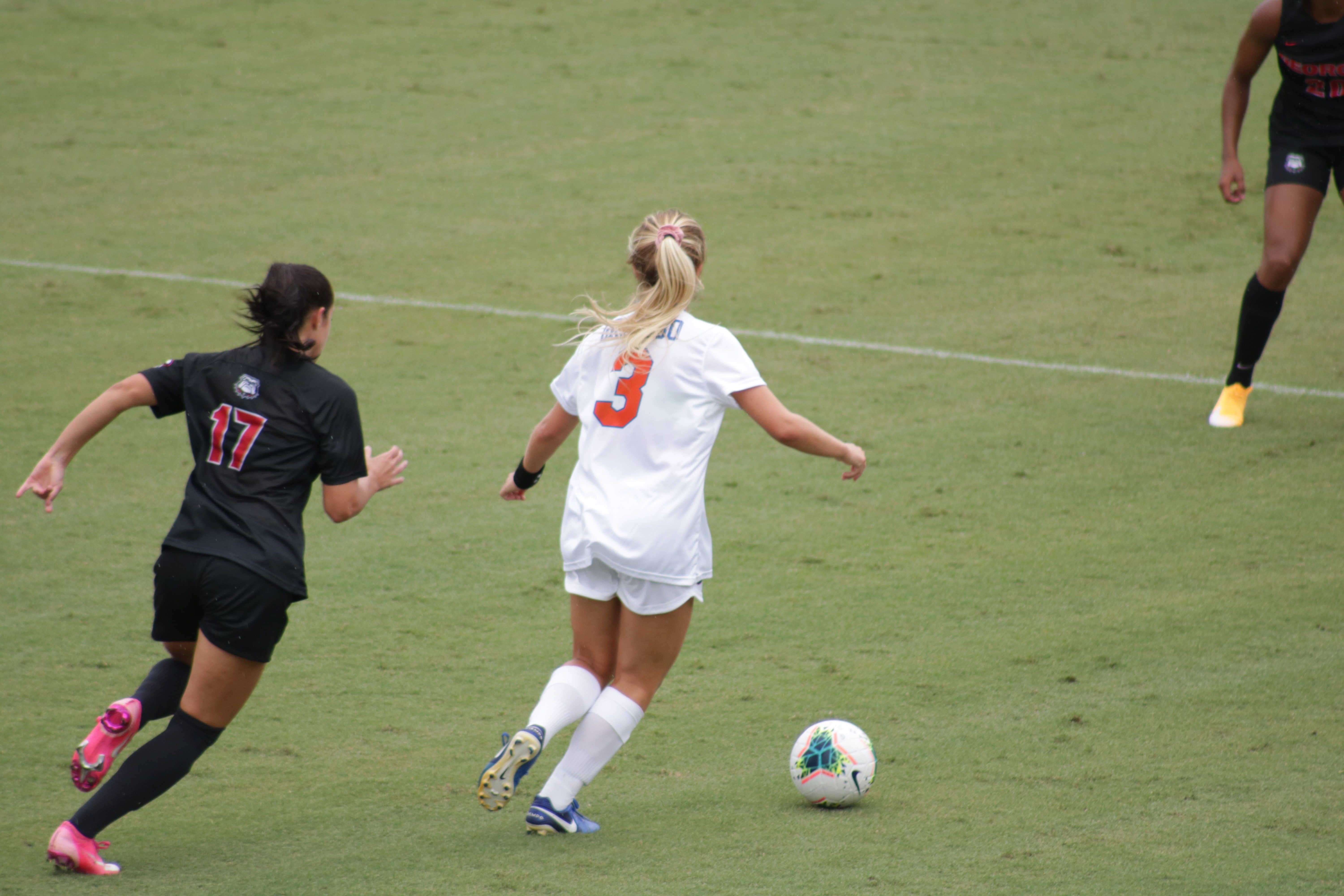 90′: Twenty seconds before the game ended, Freshman Tori Grambo left- footed the ball from 19 yards hit the far post to kick in, cutting the deficit to two, but it was simply too late for the Gators.