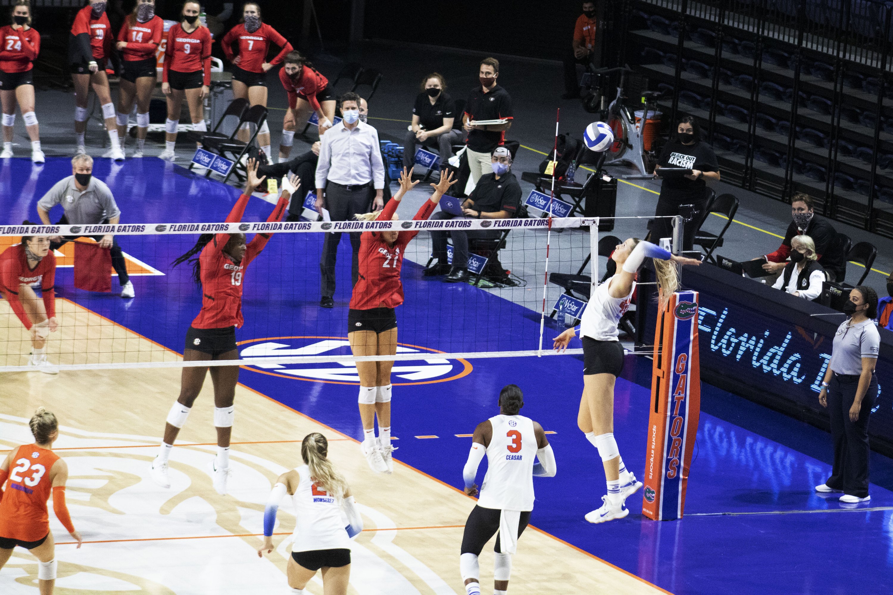 The Florida Gators women’s volleyball team added another clean sweep to their season as they took on the Arkansas Razorbacks again Saturday in the O’Connell Center. The match looked entirely different than the previous night’s match as the Gators took off against Arkansas in the first and final set.