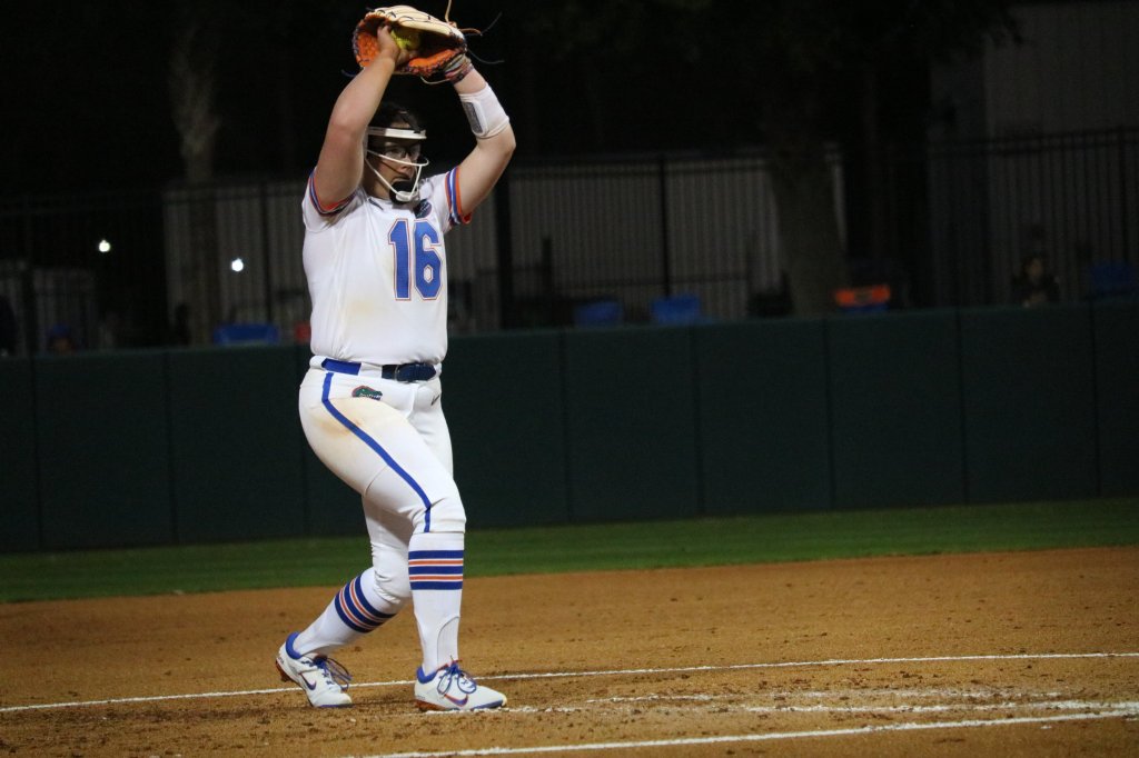 Freshman right-hander Lexie Delbrey started in the circle for the Gators and pitched the first six innings before senior right-hander Natalie Lugo came in for relief in the seventh.