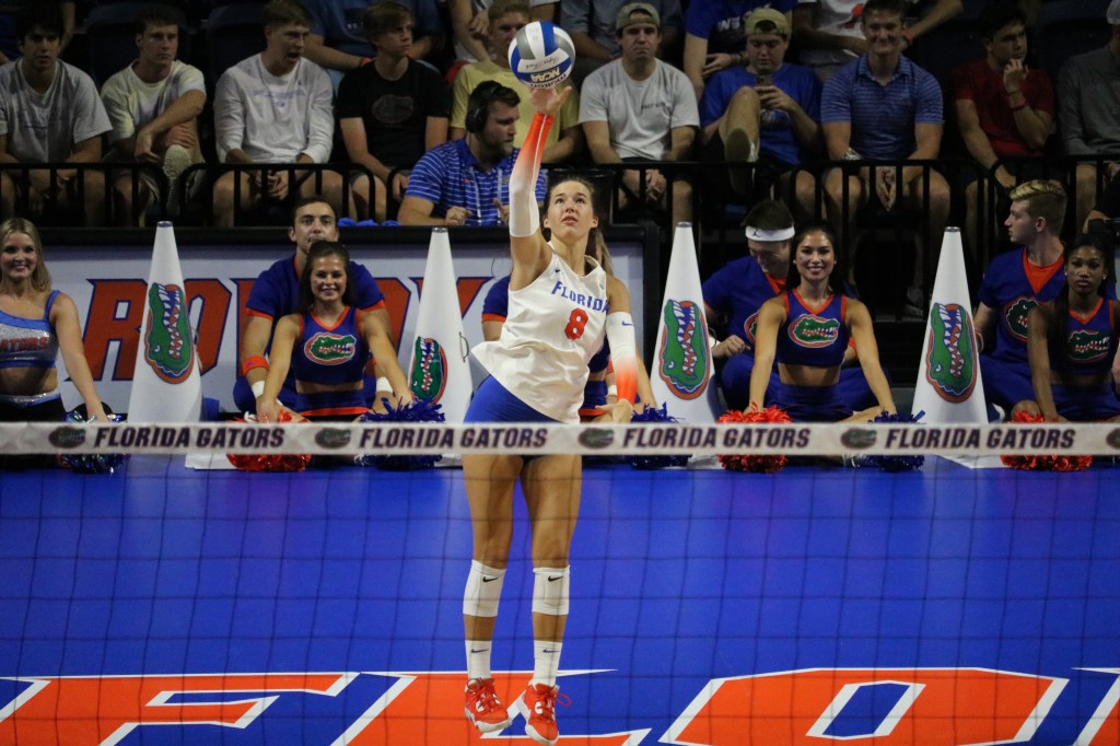 Merritt Beason set a career high with 21 kills in Friday’s match against Wisconsin. She kept this momentum going as she tallied the first point of the first set with a kill to put Florida up, 1-0.