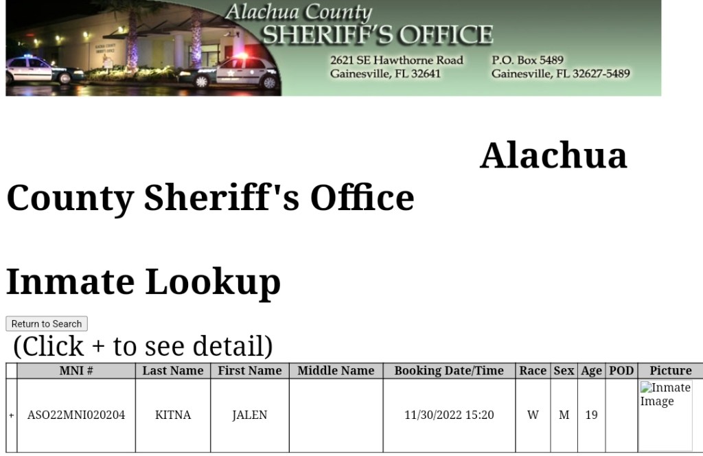 In a statement, the Gainesville Police Department says that Kitna distributed two images through a Discord server. GPD began the investigation upon receiving a cyber tip.