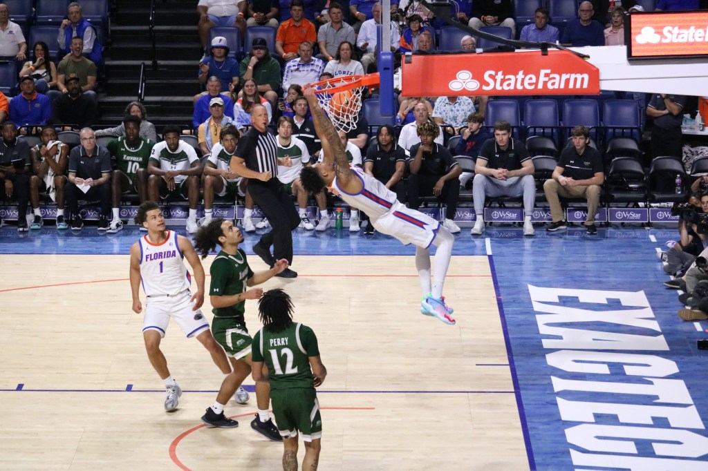 The Gators stormed out to an early 16-0 lead and cruised to victory over the Greyhounds. Sophomore Riley Kugel led Florida in scoring with 23 points while Micah Handlogten (16), Tyrese Samuel (15), and Alex Condon (13) all ended up in double digits.